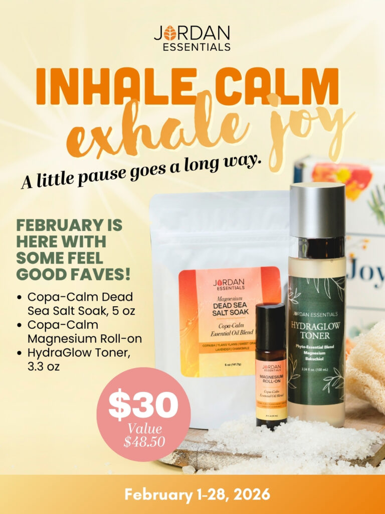 February invites us to slow down, breathe deep, and make space for moments of peace. This month’s Joyful Jordan Box is designed to help you inhale calm, exhale joy, with simple, feel-good favorites that support your body and soothe your senses. 💛